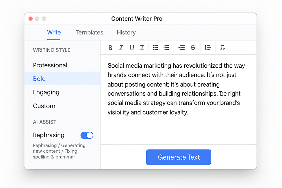 From website copy to blog articles, product descriptions to social captions — our AI writes with precision, and our team fine-tunes it for perfection.